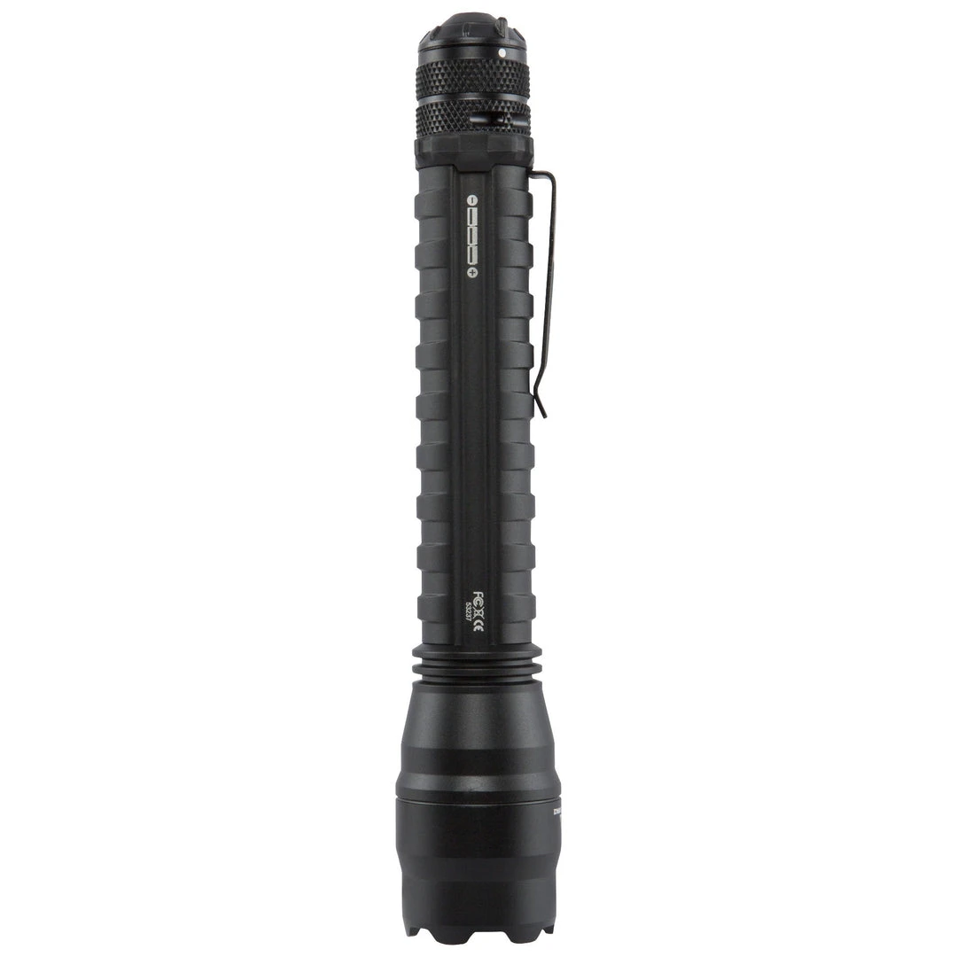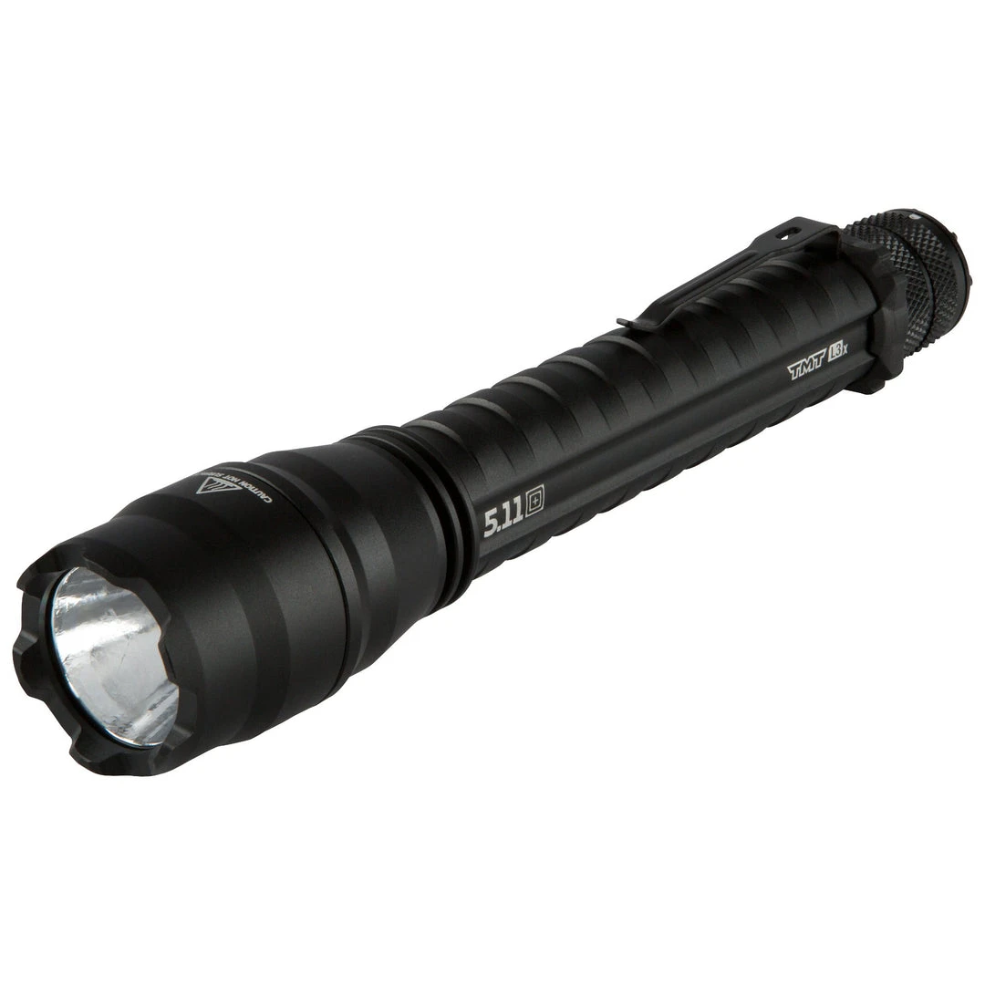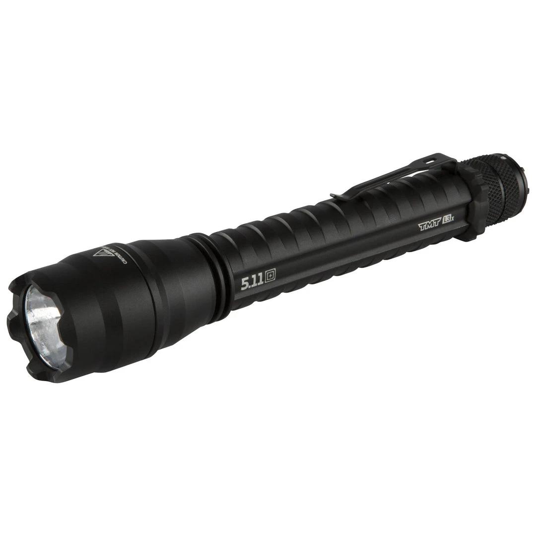 Engineered to provide a quick, smooth, and powerful lighting solution for patrol and tactical environments, the tough and powerful TMT® L3X Duty Torch offers high and low lighting modes, a momentary on toggle, and an intelligent switching feature that allows you to adjust your lighting preferences on the fly. Crafted from lightweight and durable aerospace grade aluminum, the TMT® is impact and water resistant for superior reliability in tough environments. Three CR123A batteries (included) power the L3X, providing a brilliant 860 lumens of light on high mode for over 2 hours, or 50 lumens of light on low mode for up to 29 hours. An integrated stamped metal pocket clip ensures stable carry when you’re on the move.