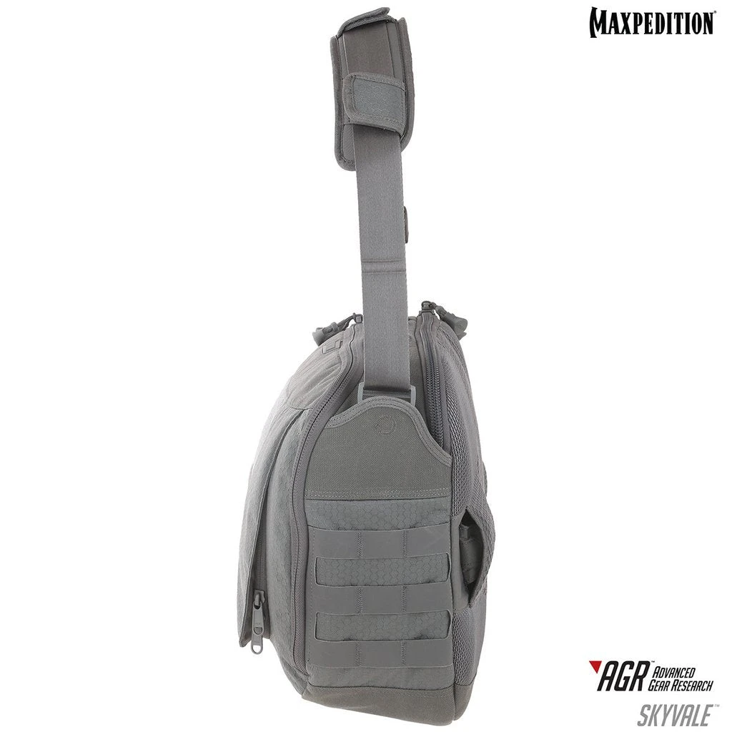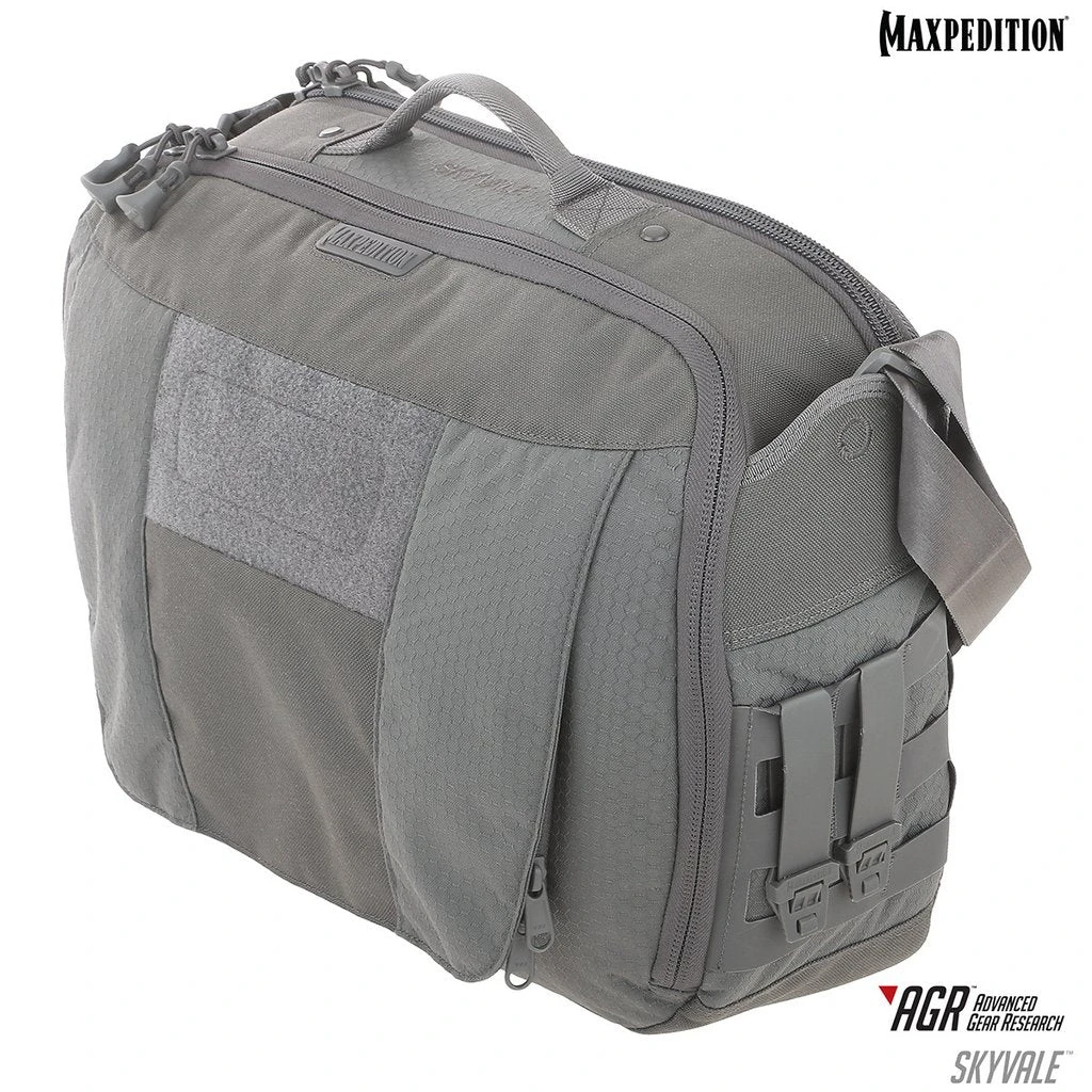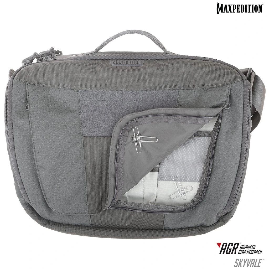 The Skyvale Tech Messenger Bag is a single shoulder strap pack, and has a fully loop-lined rear CCW compartment. The front organizer compartment has a magnetic and zippered closure. The main compartment has numerous pockets, sleeves, and elastic for excellent organization. There is a dedicated 15″ laptop compartment and a padded tablet sleeve. The shoulder strap includes a curved shoulder pad and pivoting strap connections.