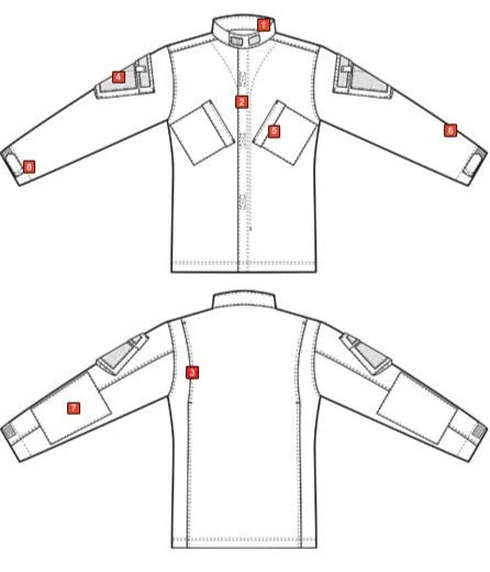 - Hook & loop faced shoulder pockets for patches & skill tabs