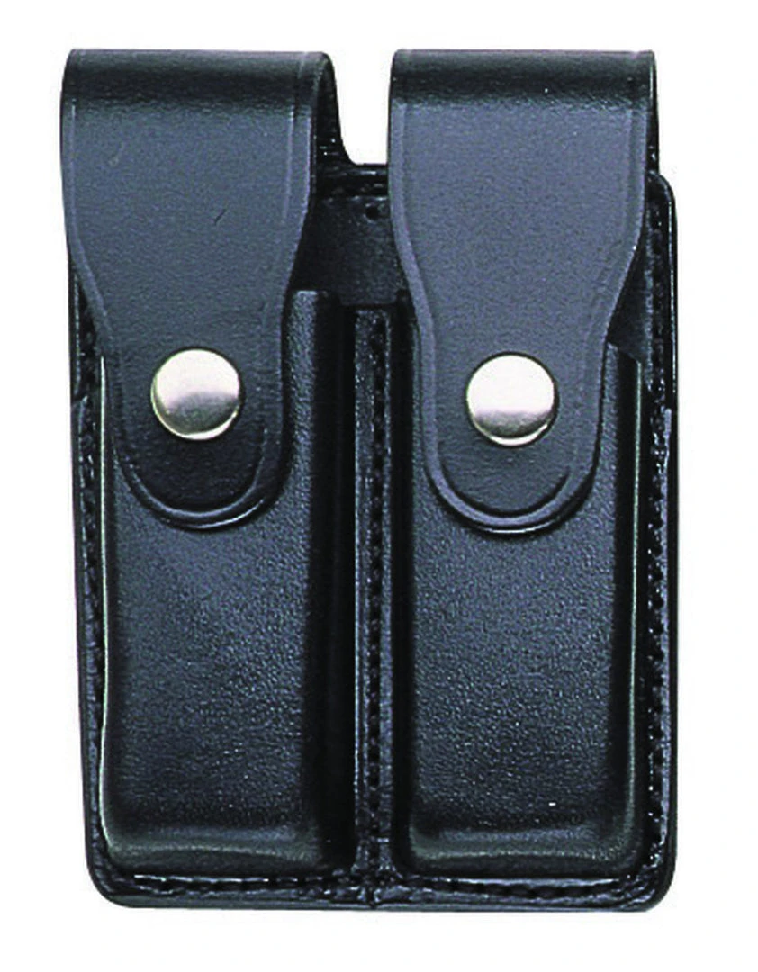 The model 20C Double Magazine Pouch is constructed of durable leather. Features vertical or horizontal carry which offers versatility on the belt and a variety of snaps. The 20C is available in two sizes to fit most 9mm/.40/.45 magazines. Fits 2.25” (58mm) belt widths.