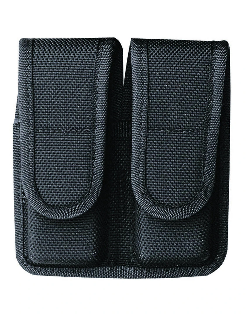 The Model 7302 AccuMold® Double Magazine Pouch is an AccuMold® trilaminate construction with ballistic weave exterior and Coptex™ lining. Features vertical or horizontal carry which offers versatility on the belt and a hook and loop or hidden snap closure. The pouch cavities expand both front and rear for a sleek, trim look. Injection molded belt loop fits 2.25″ (58mm) width belts.