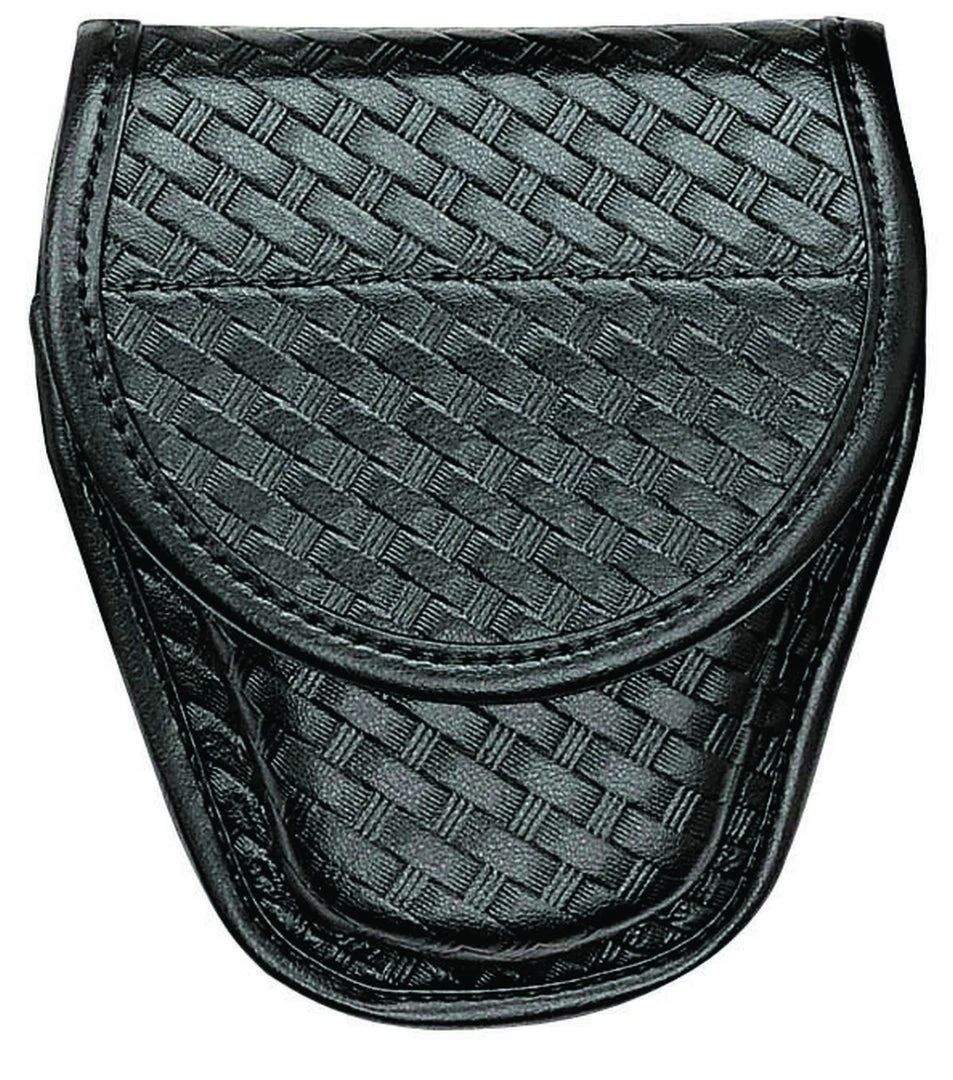 The Model 7918 AccuMold® Elite™ Ultimate Hinge Handcuff Case holds one pair of Safariland® Ultimate Hinge handcuffs or similar. Trilaminate construction with a synthetic leather-like finish, this unit conveniently fits 2 in. (50 mm) or 2.25 in. (58 mm) duty belts.