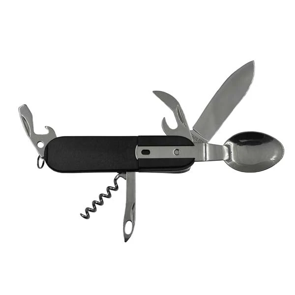 Be adventurous and tactical with the Caliber Gourmet 8 in 1 Camping Multitool. Designed to be perfect for Campers, Hikers, Fisherman, Picnickers, Outdoorsmen and just about anyone who likes to be prepared! The fork and spoon are removable so you can use them together or separate. The handle is made from a strong plastic, with good durability and shock resistance. Perfect for camping, picnic, hiking and other outdoor activities.