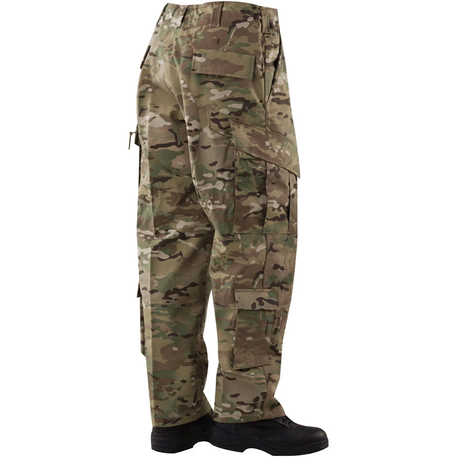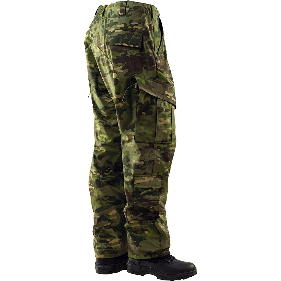 The TRU-SPEC TRU button fly camouflage pant conforms to Mil-Spec and has a one-piece waistband with a drawstring inserted for adjustable waist with a button and buttonhole enclosure. They feature a 1″ wide belt loops with 2-1/4″ belt loop openings with 2 front slashed pockets, 2 snag-proof hook and loop hip and cargo pockets as well as 2 lower leg pockets. These uniform pants also have reinforced external knee pockets for knee pad inserts and reinforced seats & knees with draw cords at the ankles. Not to forget seat seams, side seams and inseams are of double needle felled construction.