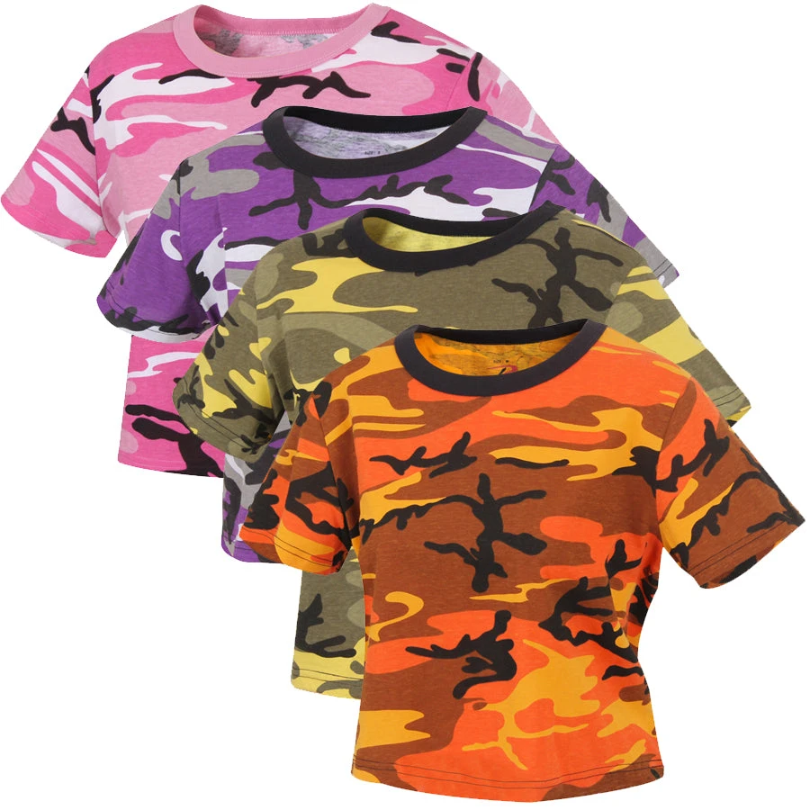 The classic camo top from Rothco has a new look! Rothco’s Camo Crop Top offers a modern fit with a shortened body. The camouflage crop top is made of a comfortable 60% cotton and 40% polyester blend and features a ribbed crew neck collar and a tag-less label for added comfort. This camo crop is also machine washable and comes in a variety of camouflage designs. Pink camouflage is the perfect urban outfit for those looking to standout. The color pink is a delicate color that is associated with people who are nice, plateful, romantic and tenderhearted. Pink camo is perfect for the person who loves others and the outdoors. These pink tops match other warm colors or even opposite colors on the color wheel.