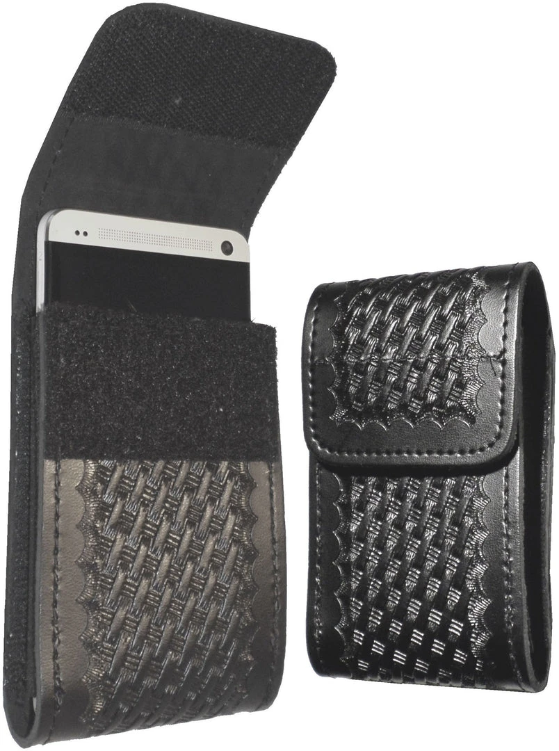 G&G’s weatherproof polymer laminate looks like leather. Pouches remain open for easy re-holstering. Clips on belts up to 2-1/4 in. Hook and loop closure. Fits most medium sized smart phones.