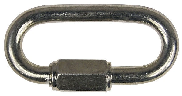 This is a stainless steel, oval shaped quick link with screw type gate & available in different sizes. It’s a fast, easy connection for permanent or temporary applications. Quick link can be more secure when tigthenend down and more cost effective compared to a traditional carabiner.
