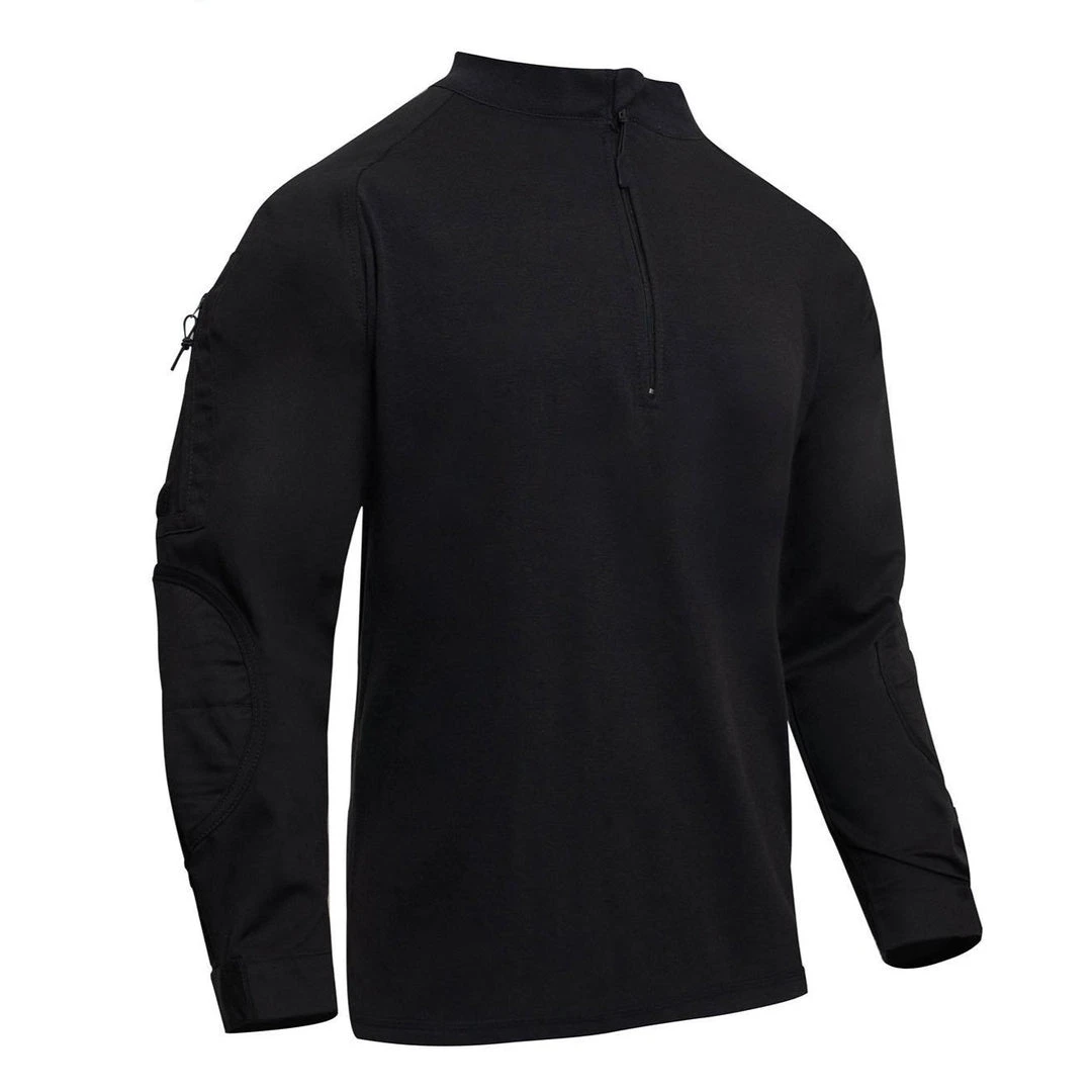 The ultimate tactical shirt for airsoft and paintball players! Rothco’s Tactical Airsoft Combat Shirt features a ¼-zip closure so you can adjust the collar’s fit around your neck while wearing the shirt alone or as a base layer for a tactical vest. Constructed with a breathable, lightweight, and resilient material blend, the combat shirt is ideal for long, intense games of airsoft and paintball with an increase in mobility. The airsoft shirt includes a mock turtleneck / mandarin collar design and a front quarter zipper closure to adjust the collar’s fit around your neck for your personal preference. Each sleeve includes zippered shoulder pockets to store and easily access smaller gear. Additional features on the airsoft combat shirt include reinforced padded elbows, gusseted sleeves, loop fields, and glint tape.
