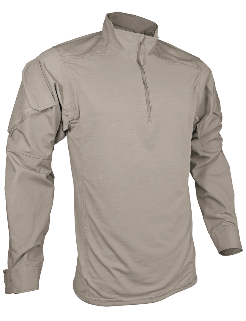 - Drirelease fabric body; 6.5 oz. 65/35 Polyester cotton rip-stop sleeves