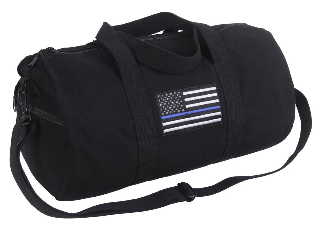 Rothco’s Thin Blue Line Canvas Shoulder Duffle Bag is the perfect bag for traveling or the gym while supporting Police Officers and Law Enforcement Officials.