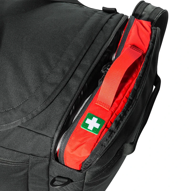 Our TT Officers Bag is a travel/duty bag that includes an IFAK pouch. In addition to the main compartment, there is a zippered pocket on the front and two large pockets on each end. The front of the main compartment has a MOLLE hook-and-loop panel. It can be carried by hand, over the shoulder, or worn as a backpack.