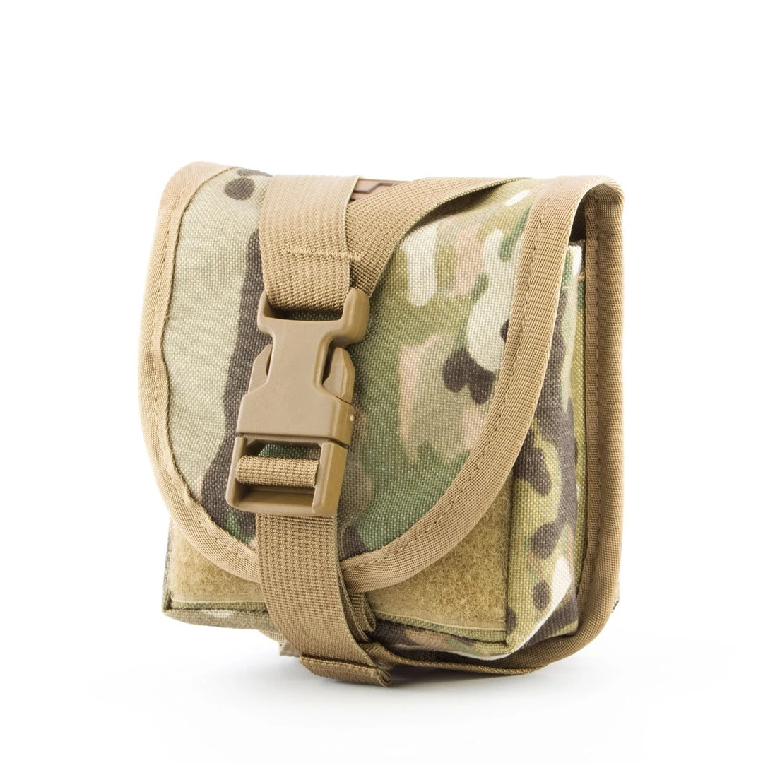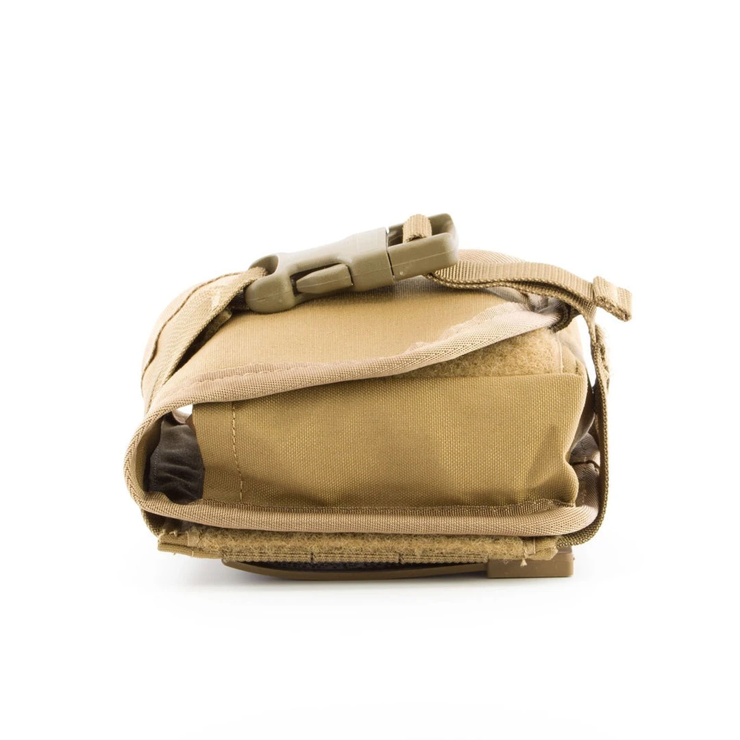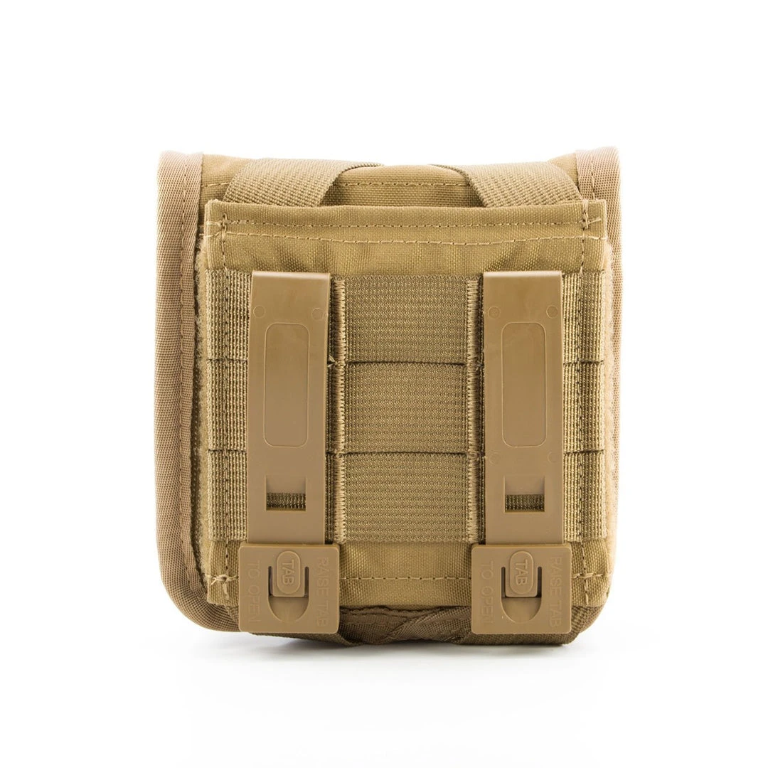 The platform can be mounted utilizing the included Malice Clips to any MOLLE/PALS webbing. The pouch has a cross patch to identify it as “medical” and allows you to carry life-saving equipment on a web style vest. There is a small pocket inside the flap which can hold a pair of exam gloves or other small items. Velcro flap closure. It can also be used as a general utility pouch