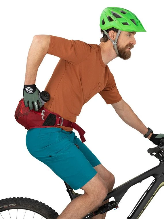 - Our bike-specific, angled hipbelt and compression straps provide stability and comfort by keeping the pack close to your body. This is created by a breathable airmesh wrap hipbelt that contours over the hipbone, Osprey’s ErgoPull cross-body waist strap closure system that pulls the pack into the lumbar and side compression straps that pull the load close to your body, providing the most comfortable, secure and stable carry.
