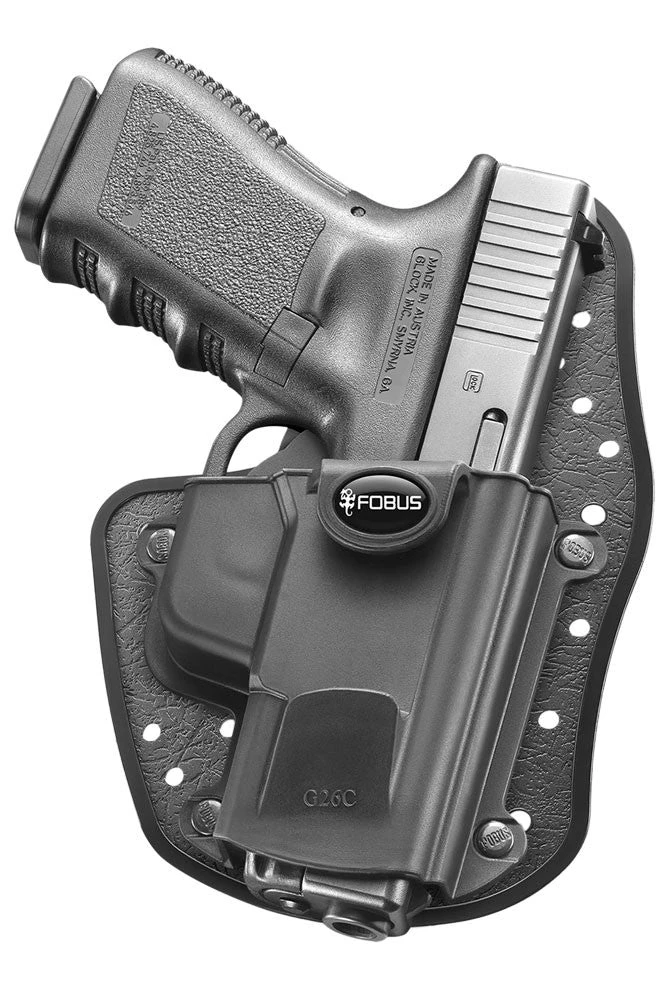 The Concealed Inside the Waistband (IWB) Holster from Fobus is a low-profile design intended for comfort and discretion. It attaches to belts employing a J-hook, which ensures it remains securely in place and allows for rapid removal without having to undo a belt. Made from high-density polymer, the holster maintains its shape while empty, which also guarantees smooth one-handed reholstering. The flexible, rubberized backing pad offers improved ventilation and is soft and comfortable to wear. Additionally, the durable material safeguards firearms from damage by bodily fluids and daily wear.