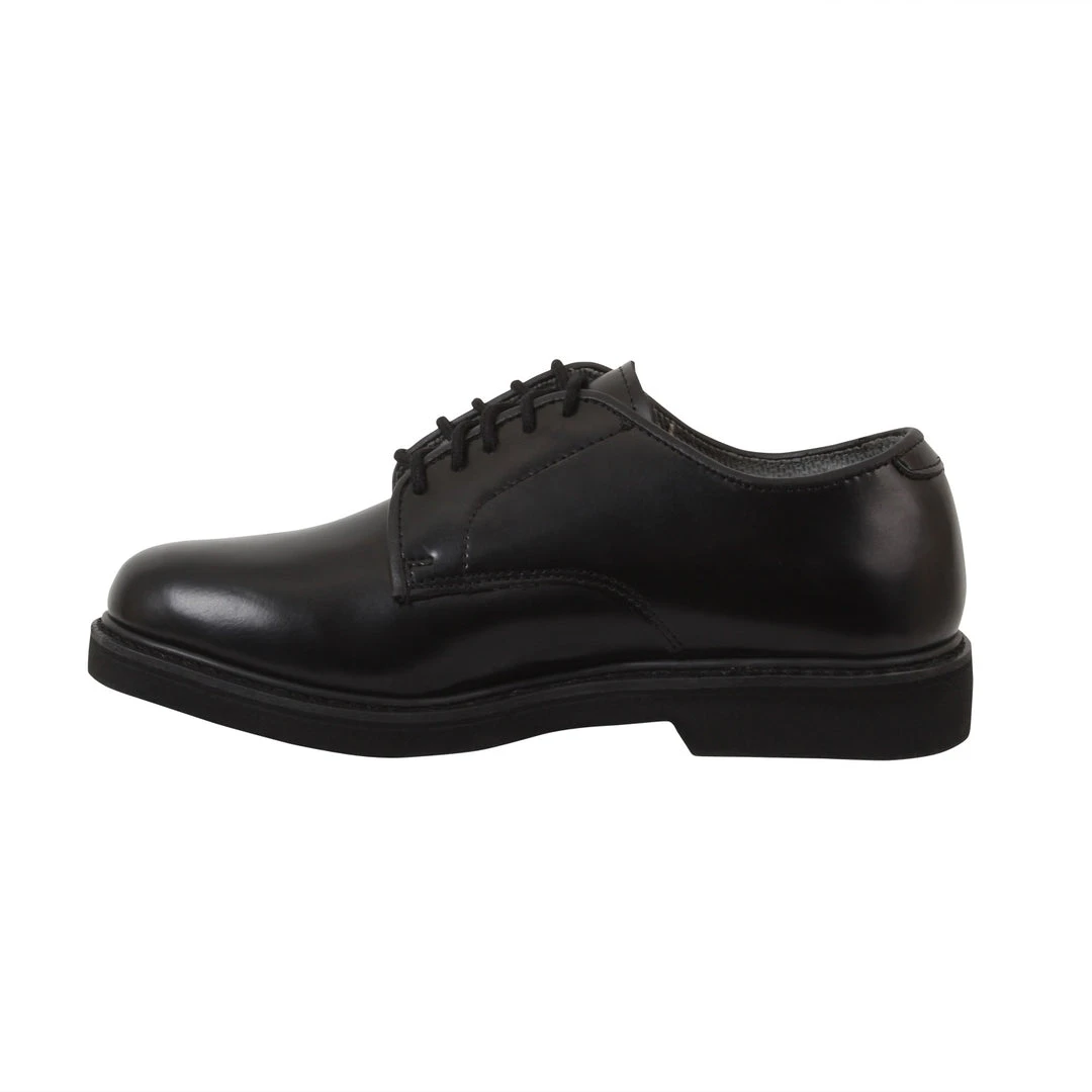 Enhance your military apparel collection with Rothco’s Oxford Leather Shoes. The military dress shoes are designed with a slip and oil resistant outsole for superb traction and a removable cushion insole for added comfort. Lined with cambrelle material, the oxford shoes will absorb moisture to keep your feet dry. In addition, the soles of the uniform shoes are fully stitched and feature a steel shank to relieve stress on your legs. The oxfords are made with traditional Goodyear welt for improved durability and lifespan.