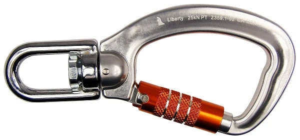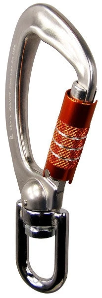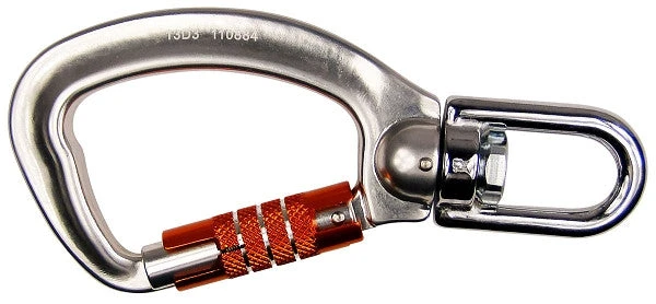 With its extra-large body and swivel true captive eye, this carabiner is a great choice for a wide variety of applications. It has an aluminum body and an triple-locking gate with a snag-free key-shaped nose. The triple-locking gate provides the safety if a 3-stage auto-locking gate that can be easily opened with one hand. Meets ANSI Z359.1-1992 standards.