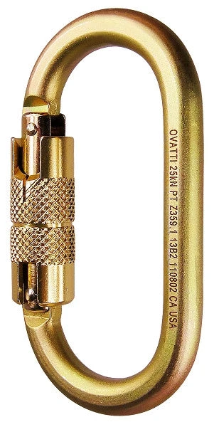 Oval-shaped carabiner decreases the chances of cross loading the gate and distributes the load evenly making it ideal for use with pulleys. It is easy to handle and clip to any pulley for climbing applications. Strong and versatile with an alloy steel body & auto-locking gate. Meets ANSI Z 359.1-92 standards.