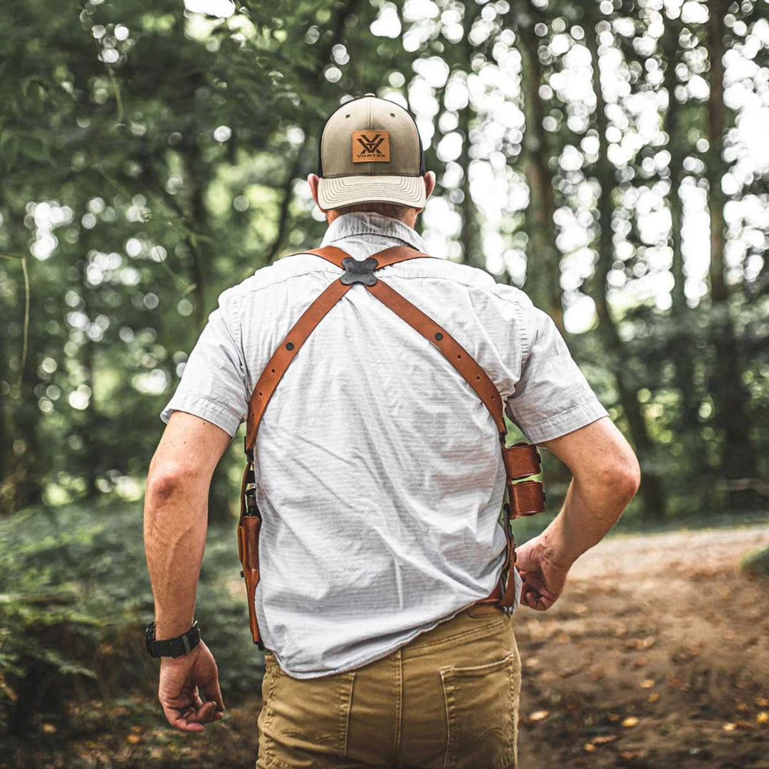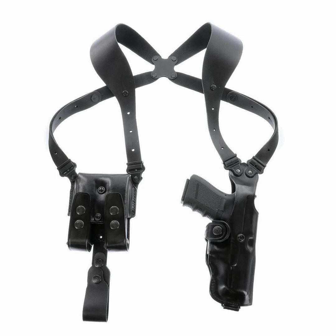 The Vertical Shoulder Holster System consists of holster, harness, ammo carrier and a set of system screws. Fully modular, optional accessories and components may be purchased separately.