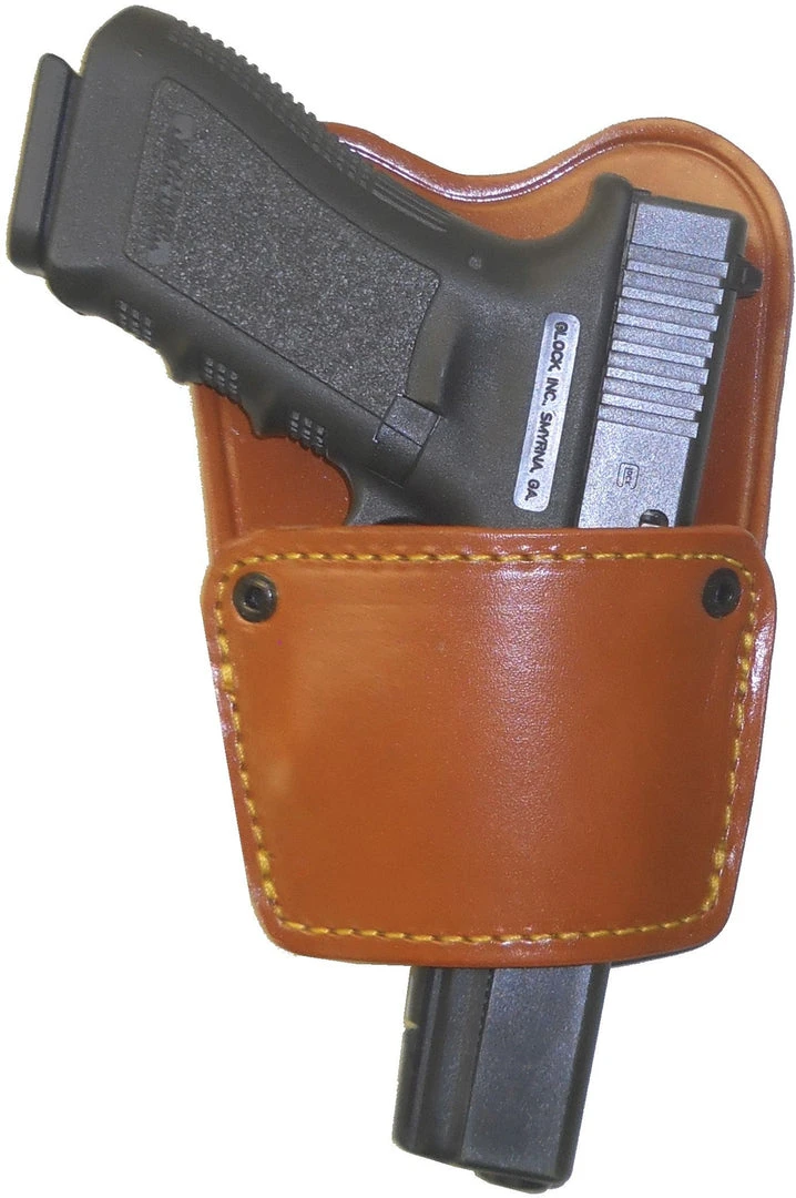 Spring steel clip and leather flap body shield are removable for maximum versatility.
