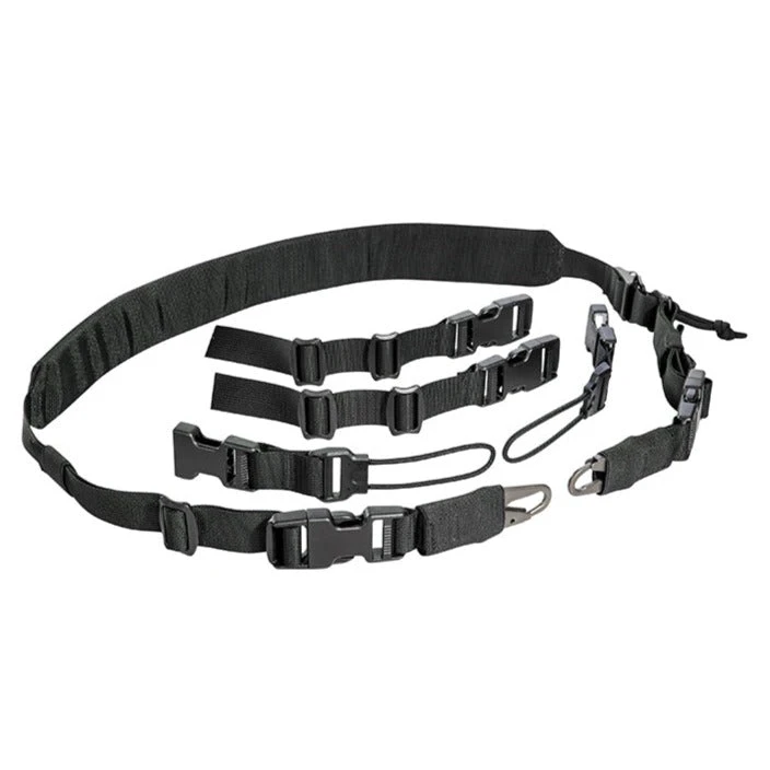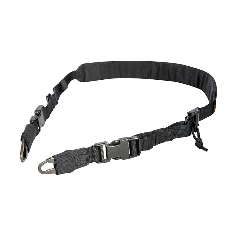 Padded strap with a variety of carrying and attachment options. Quick fasteners allow you to attach weapons, hooks, etc.