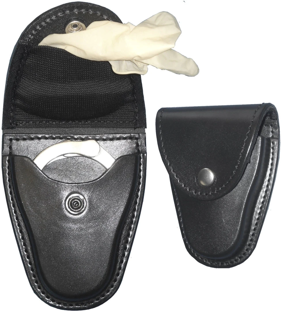 Holds most chain handcuffs. Inner pouch holds one pair of surgical gloves.