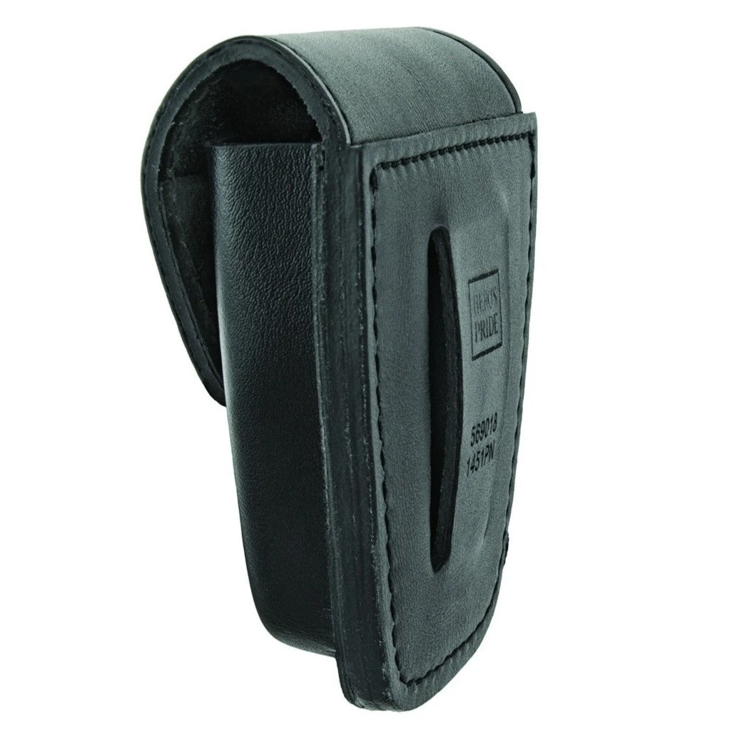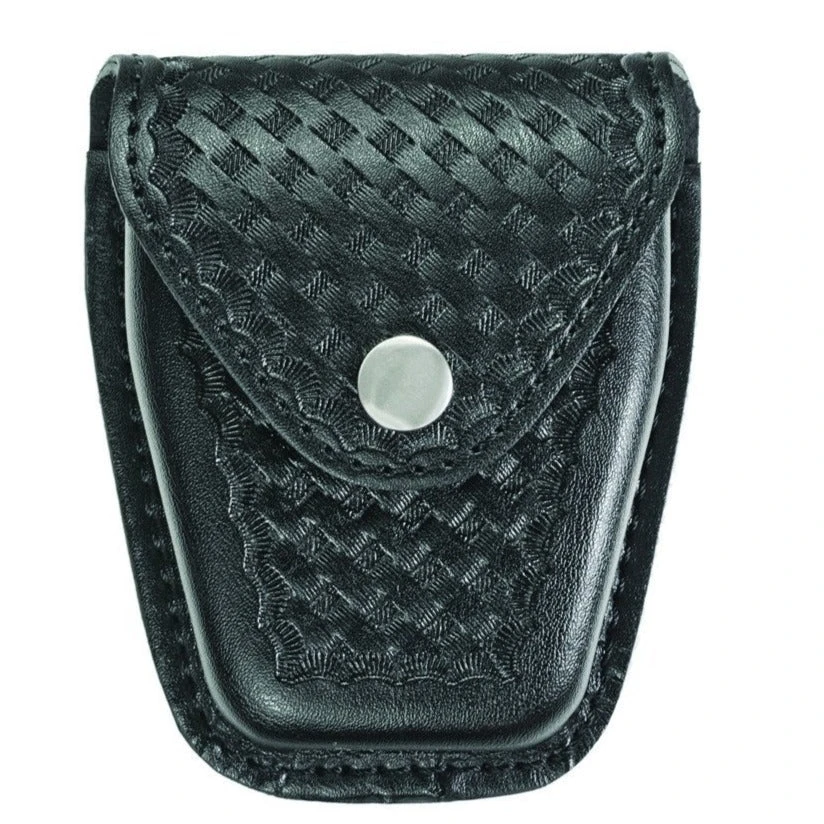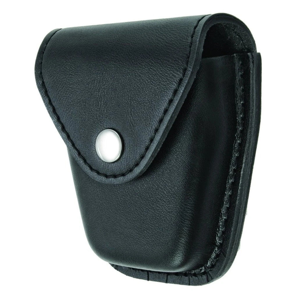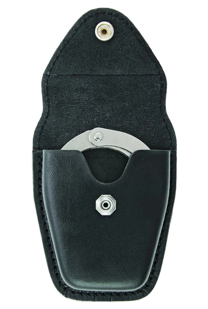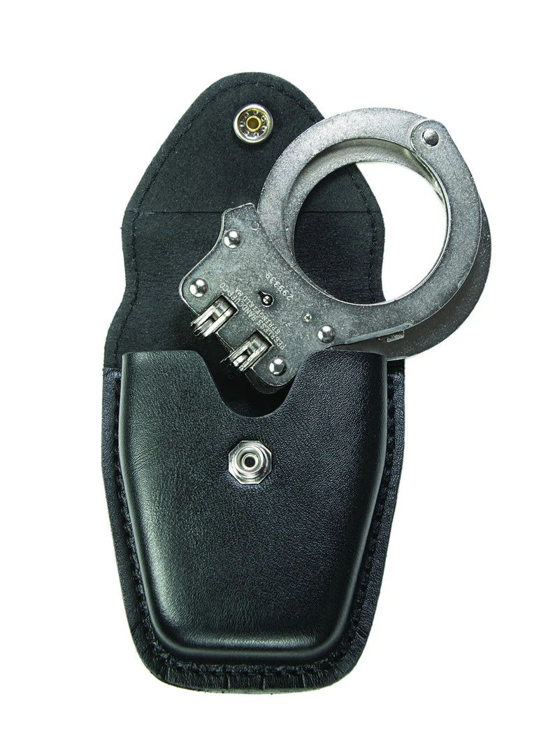 AirTek Single Closed Handcuff Case securely fits standard chain handcuffs and is crafted with our specialized 33E HP finish and 100% genuine leather to provide lightweight comfort, scratch resistance and durability. Molded design for secure equipment placement and quick in/out access. Reinforced DOT® snaps for reliable snap/re-snap functionality.