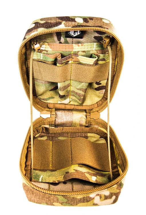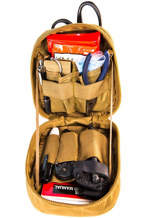 - Two additional vertical slots on back of pouch allow storage and quick access to trauma shears