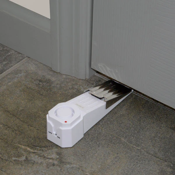 - Triple purpose: wakes you, alerts others and prevents door from opening with a non-skid pad