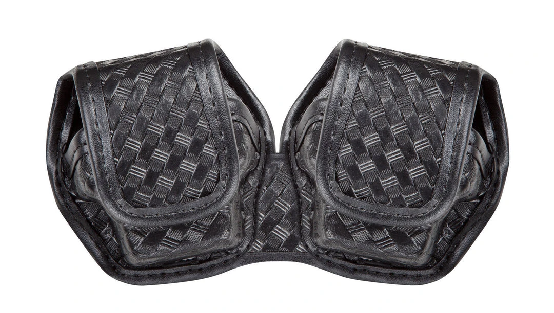 The Model 7936 AccuMold Elite® EDW Double Pouch is an AccuMold Elite® trilaminate construction with ballistic weave exterior and Coptex™ lining. This compact design allows for carry of two Taser® X26 cartridges. The 7336 features a hidden snap closure and fits 2.2” (58 mm) belt widths.