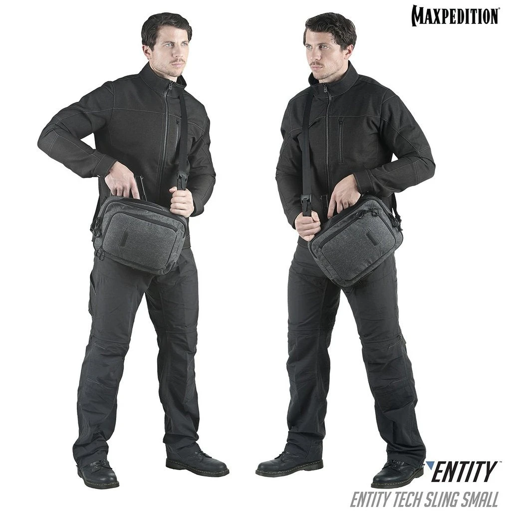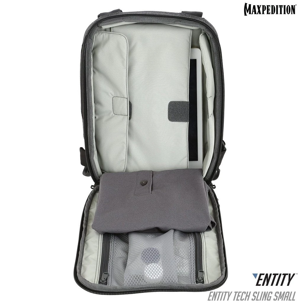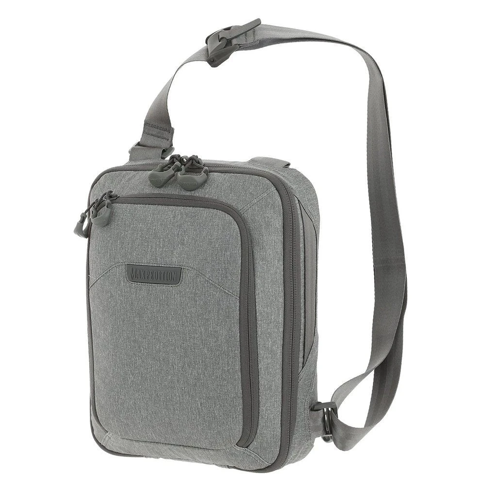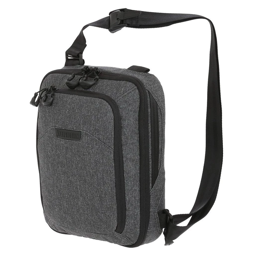 The smaller of 2 available sizes, this CCW-enabled tech sling bag has a strap that may be positioned by the user for right or left side carry, and may also be easily changed from a sling bag to a shoulder bag. A padded main compartment with lockable zipper sliders contains a padded 11″ laptop/tablet compartment accessible from either side. Additionally, there is also 2-way access to a fully loop-lined rear CCW compartment. A Security Lockout Strip is included for safety.