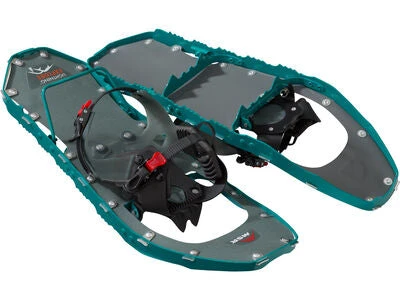Lightning Explore snowshoes represent a giant leap in snowshoeing performance, ease and comfort. It begins with the elite performance of our 360° Traction frames, featuring advanced, edge-to-edge grip. Next, new HyperLink bindings feature a redesigned fast and easy ratchet system and get a comfort boost from EVA foam cushions that cradle the foot. Finally, you get the benefit of our Ergo Televators for steeper slopes, and add-on Modular Flotation tails—all to provide the versatility you need to enjoy a broad range of snowshoeing experiences.