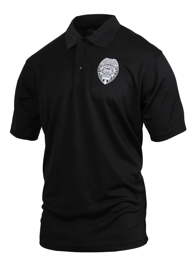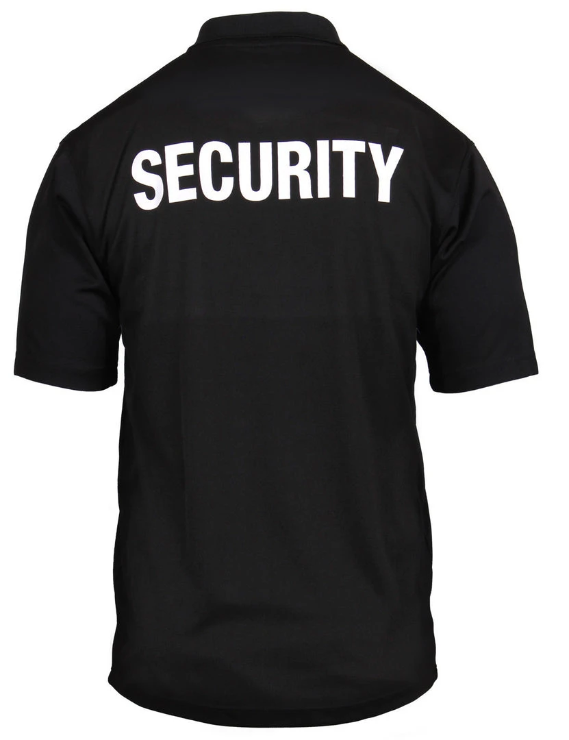 Rothco’s Security Polo is constructed of a moisture wicking polyester performance material, keeping the body cool, dry and comfortable in the most heated situations. The classic collared shirt features a printed white security badge on the left chest and printed Security across the back.