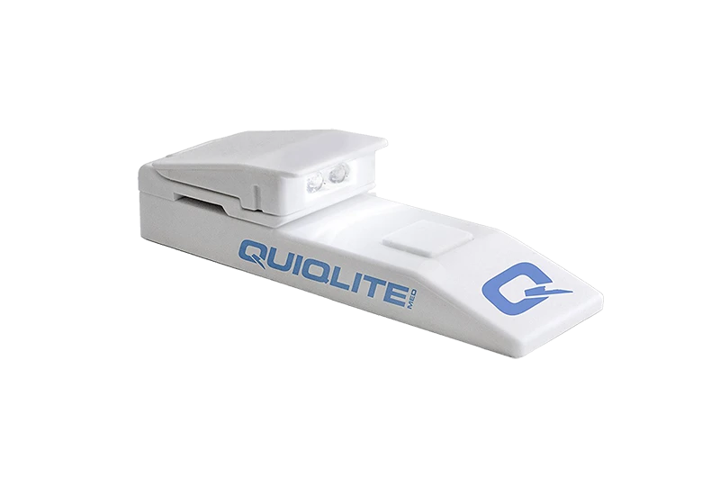 The New QuiqLiteMed hands free LED light is our answer for an improved light weight easy to use light for medical professionals. QuiqLiteMed, can be clipped into a uniform pocket or scrub and can be used as an examining tool as it’s penlight predecessor. It is equipment with a constant On/Off button and adjustable LED arm, allowing you to adjust the light where it is needed. QuiqLiteMed is also equipped with a Pupil Gauge located on the back of the product.