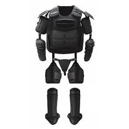 Arsenal Suit which includes, protectors for chest, back, shoulders, arms, hips, groin (with an added groin cup), quadriceps, and shins.