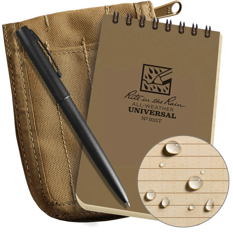 Something to write with, something to write on, and somewhere to keep it all organized – rite in the rain kits keep you writing through water, mud, grease, & more. Permanent ink writes through water, sweat, grease, and mud without clumping or smearing. Our scrappy notebook will survive sweat, rain, mud, snow, oil, grease, and the wear-and-tear of daily use. All-purpose pockets make it easy to organize your small field essentials and safeguard your notes.