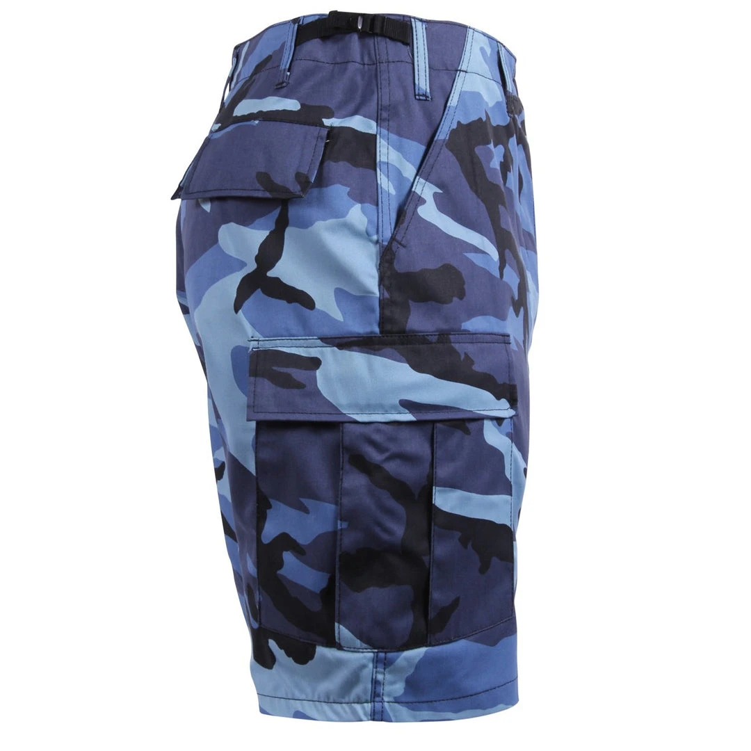 Stand out in Rothco’s Colored Camo Tactical BDU (Battle Dress Uniform) Shorts; the combat-tested military shorts are available in various colored camouflage patterns including city camo, ultra violet camo, and black camo. In the street or in the field, the military cargo shorts feature a cotton / polyester blend to withstand wear and tear. Modeled after the U.S. military’s standard-issue Battle Dress Uniform, the camo shorts include six versatile pockets, including two large button-down pleated bellow side cargo pockets, two front slash pockets, and two rear button-down pockets. For your ideal fit and feel, the camouflage tactical shorts feature adjustable pull-tabs on the waist.
