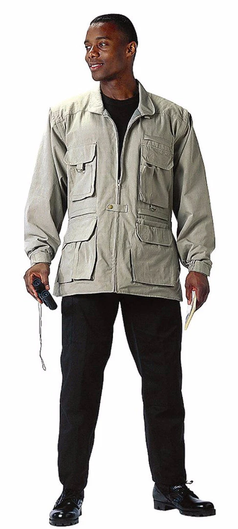 Eliminate the need for bags or pouches when traveling to your next destination with Rothco’s Convertible Safari Jacket. The convertible safari jacket can easily convert from a jacket into a travel vest with the zip-off sleeves, allowing you to adjust in different climates and seasons. Featuring 19 versatile pockets, the safari jacket offers plenty of room to store all your essential gear. The left zippered security chest pocket includes a utility lanyard to clip-on keys, a compass, or other supplies. Each hook and loop chest pocket features d-rings and smaller front pockets for storing pens and additional items. The zippered mid-torso security pockets can securely store your phone, wallet and other important gear. Store a notebook and/or a small camera in the three overlapping pockets located on the left waist. Three deep pockets on the right waist provide ample storage for gun magazines, a flashlight, flare, and other outdoor essentials. Conceal important items with the two slash pockets and two interior hook and loop pockets. The large hook and loop back pocket is great for storing maps, travel documents, and other vital paperwork. While wearing as a safari jacket, the sleeves feature elastic hook and loop wrist cuffs to cinch over a pair of gloves or adjust to your ideal fit. The vented back allows body heat to escape while letting air flow in to keep your body cool in hotter climates. Additional features include a front zipper and snap button closure, adjustable cinch straps, and a reinforced yoke for greater structure and support to the travel vest.