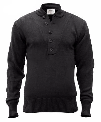 Warmth and style? Yes–you can have both with this GI style 5-button Acrylic Sweater. The sweater is 100% acrylic, elastic knit cuffs to keep you warm and a 5-button front.