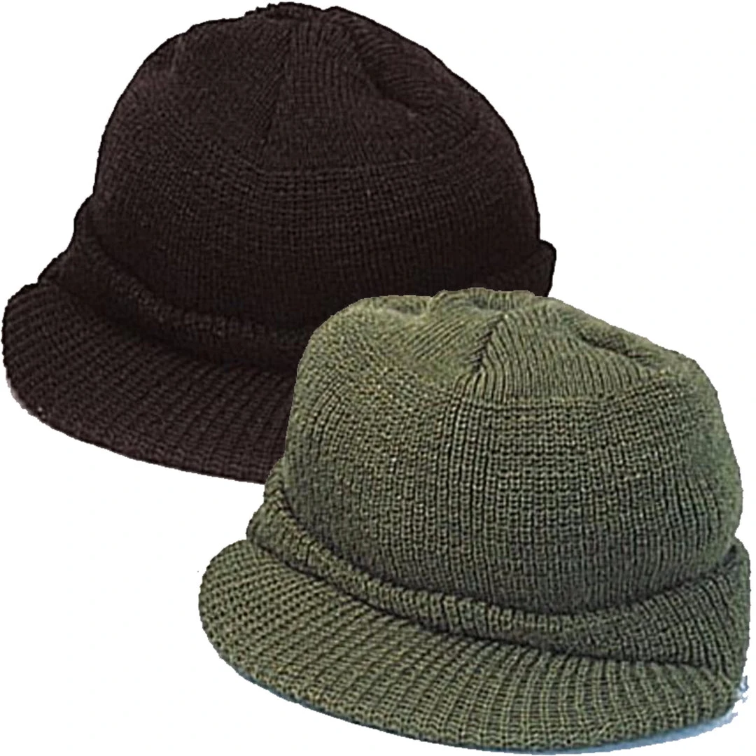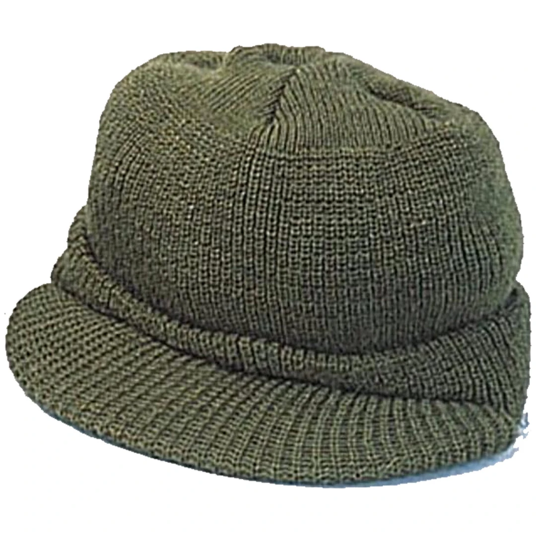 The “jeep cap” was first issued by the United States Army in February 1942 during World War II with the purpose to be worn underneath the heavy combat helmets. The idea was the jeep cap would be dual purpose, to keep soldiers warm and to pad the helmet from the excessive weight. Radar O’Reilly from M*A*S*H (who was seldom seen without one). It was eventually phased out and replaced with the standardized field cap, as part of the newer, layered U.S. Army M-1943 Uniform. Authentic government issued The jeep cap has been continued to be manufactured by the U.S. Army, however, many significant changes have been made to the cap since the original issue. For one thing, the cap is now knitted very loose and deep so it can be pulled down even lower over a soldier’s head and ears for more warmth (the cuff doesn’t necessarily have to be pulled down to achieve this), and instead of the old six-stitch “starfish pattern” on top, it now features a simple, more modern four-stitch topping. The cuff is now knitted completely around the entire cap, rather than coming out like a V at the center of the brim; also gone are the days of the cap being issued in four different sizes, as modern yarns are elastic enough that they are “one-size-fits-all”.