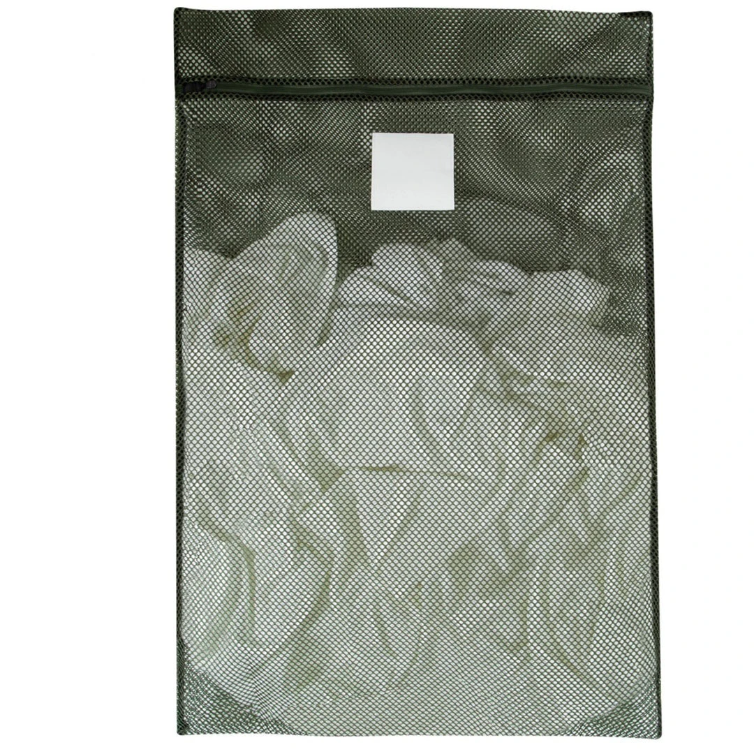 Conveniently store and wash your uniform and clothing with Rothco’s Washable Zippered Mesh Laundry Barracks Bag. The barracks bag features a rustproof plastic zipper closure and an elastic zipper holder to prevent the zipper from un-zipping while in the washer machine, so you can wash the laundry bag and the contents all at once. With an overall size of 24” X 36” and a material composition of 100% polyester, the washable laundry bag will bear the weight and size of multiple days’ worth of laundry. The Army laundry bag is fully meshed, preventing clothes from snagging in the washer machine and dampness by increasing airflow. On the front of the military laundry bag contains a 4 ½” X 4 ¾” center patch to write your name and other information so the bag is not misplaced or taken by accident. Ideal for washing military uniforms, delicates, activewear, and everyday clothing.