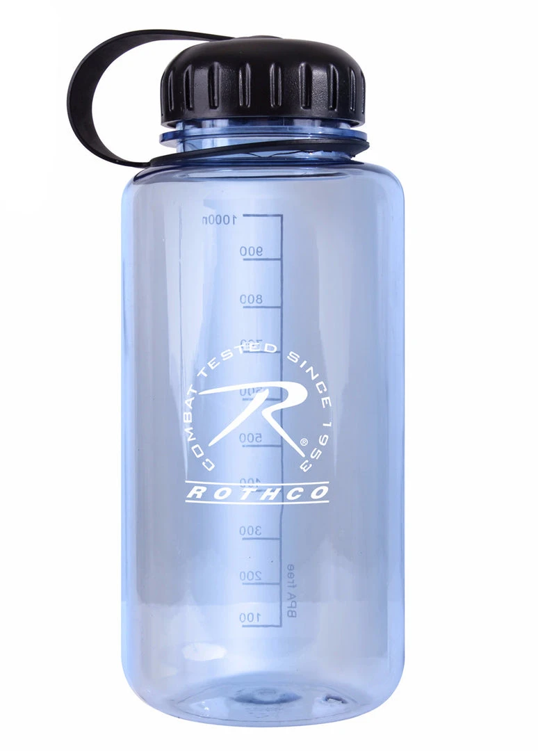 Rothco’s BPA Free Plastic Water Bottle is an incredibly durable wide-mouth plastic water bottle. The Rothco Water Bottle is made of a shatterproof BPA Free plastic material with ML measurement markings (up to 1000) on the side. This 1 Quart (32 oz) water bottle features a screw on cap that is attached to the bottle. Fits in Rothco’s MOLLE Water Bottle Holder.