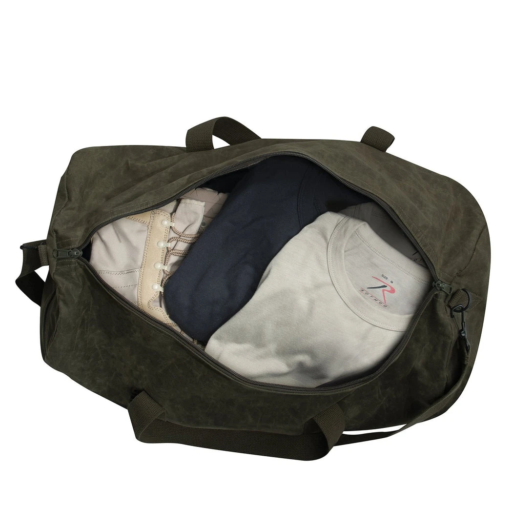 Rothco has taken our 24-inch duffle sports bag and enhanced the canvas material with a wax/oil treatment that provides a water-resistant finish. The addition of a fully lined interior offers added protection for your personal belongings. For ease of carrying, the large canvas gym bag has a detachable and adjustable shoulder strap and twin carry handles. Measuring 24″ x 12″, Rothco’s large waxed canvas duffle bag is perfect for taking on your next adventure from the great outdoors to your next workout.