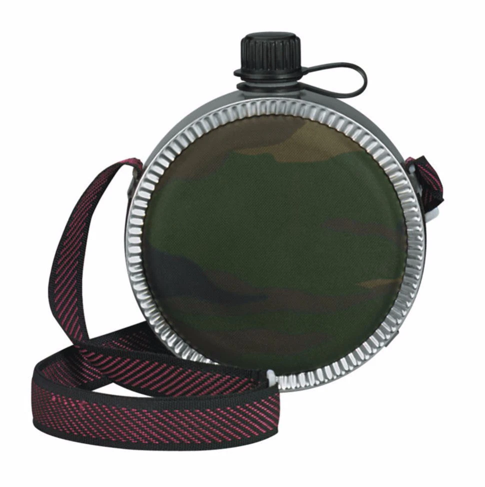 Rothco’s Woodland Camo 24oz Mini Desert Canteen features a camo pattern outside that is terylene & acrylic with a polyethylene / plastic inner body and tinplate outer body. Rothco’s camo canteen complies with FDA specifications and is safe for food contact. In addition the canteen features and adjustable web shoulder strap and screw-on cap with chain. This item is great for the outdoors!