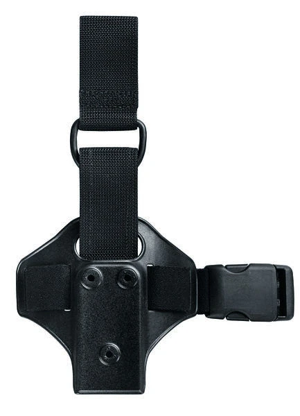 It has an adjustable, vertical leg strap to customize ride height and a 2 in. single elastic strap which attaches to the belt. Its small size allows for a lower profile carry and it is constructed of injection molded nylon for durability and flexibility. The leg strap features silicone strips for non-slip traction.