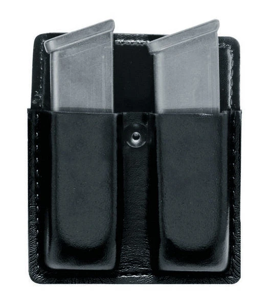 The Model 75 is an open top double magazine pouch and is designed to carry two magazines on a 2.25 in. (58 mm) duty belt. The 75 rides in a vertical position on the belt and carries the magazine in a butt-up position for easy access. A tension screw allows retention adjustment by the user. It is constructed of SafariLaminate™ and is available in four scuff-resistant finishes.