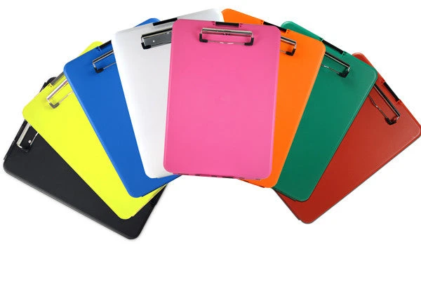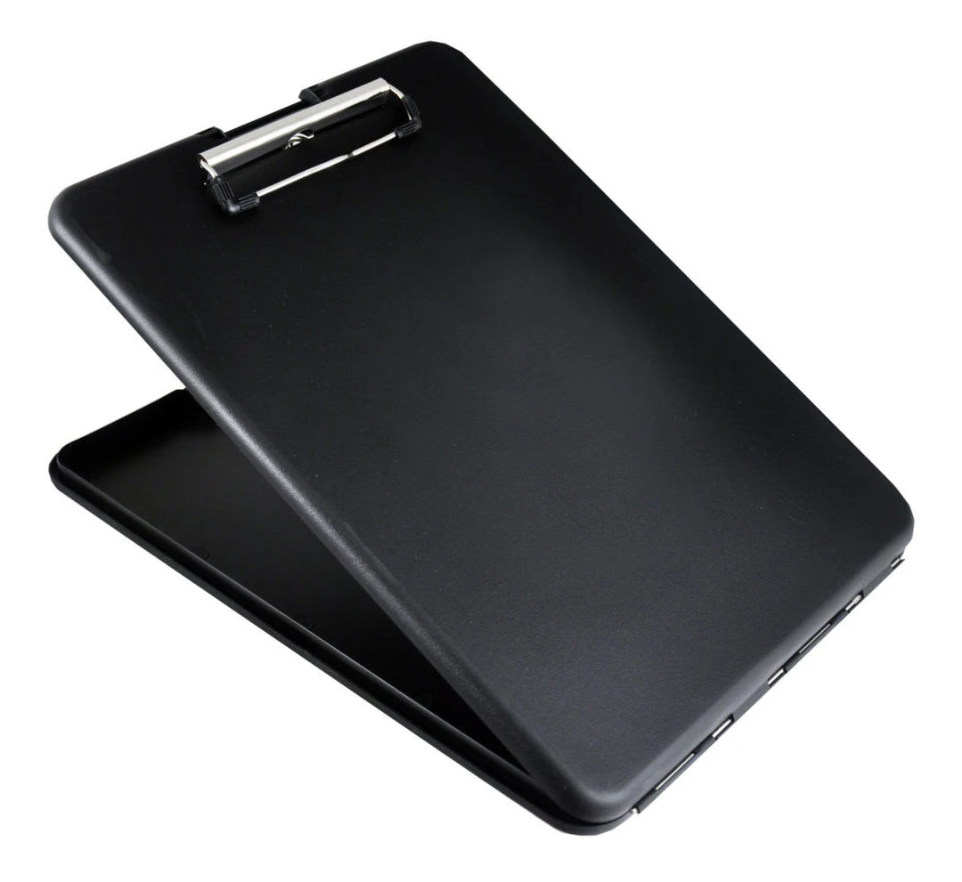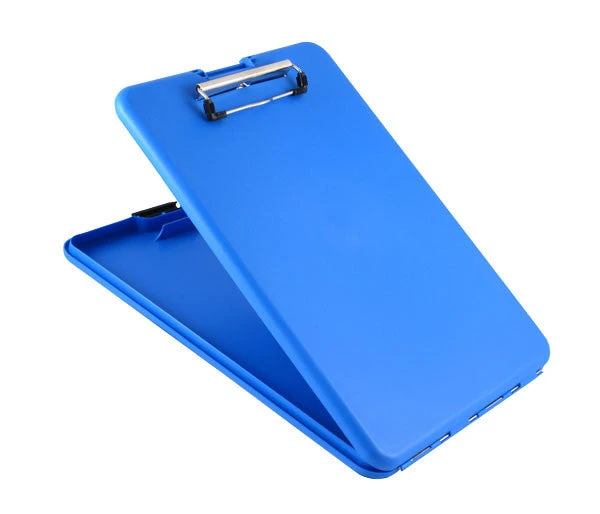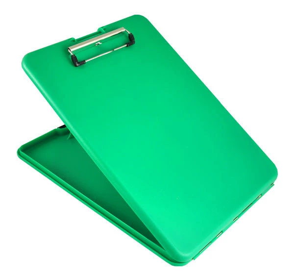 The Saunders Slimmate storage clipboard is a great product for any individual who needs a sturdy writing surface whether at the office, in a meeting or in the field. This slim design minimizes bulk and fits easily into a backpack, briefcase, or other tight spaces yet offers plenty of storage. Top open design allows for easy access to your documents, writing instruments and other small supplies. Widely used by event organizers, coaches, realtors, and even traveling families for the kid’s homework, or crafting. Latch stays securely fastened when thrown to the ground or into the trunk of a vehicle when not in use. Choose from our large assortment of colors to match your style, or just organize by color!
