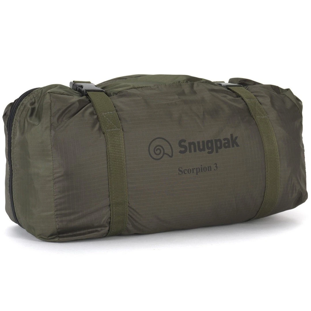 The Scorpion 3 by Snugpak is a new and exciting addition for Snugpak. The first thing people will notice about the Scorpion 3 is its stylish and sleek design. This design helps the Scorpion 3 to fend off those fierce winds that kick up from time to time and still is built and designed for long term hard use. With it’s 5000mm PU Coated Fly it can handle large amounts of rain keeping you and your gear dry, as it should be. The Scorpion 3 has one door and three vents as well as all types of extras like internal mesh pockets, No-See-Um-Mesh, all seams are seam taped and much much more. The Scorpion 3 is a Fly First pitch type tent.