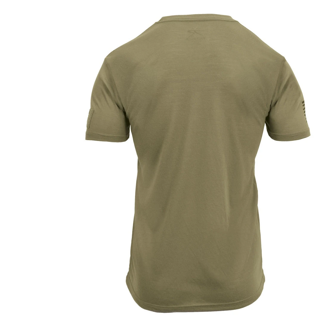Rothco’s Tactical Athletic Fit T-shirt is moisture wicking and features a loop field on the left sleeve for adding moral patches. This tactical shirt features a 3.5″ x 2.36″ loop field on the wearers left sleeve and a reverse distressed US Flag on the right sleeve. Rothco’s Tactical T-Shirt has a slightly smaller chest, smaller armholes and smaller sleeve opening for a more athletic fit and style. Tagless label, inset collar and 100% cotton ring spun material offers maximum comfort all day long.