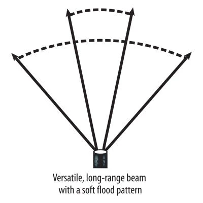 - C4 LED for super-bright light with useable range: 4,000 candela peak beam intensity; 80 lumens; 126m beam distance; 5 hour run time