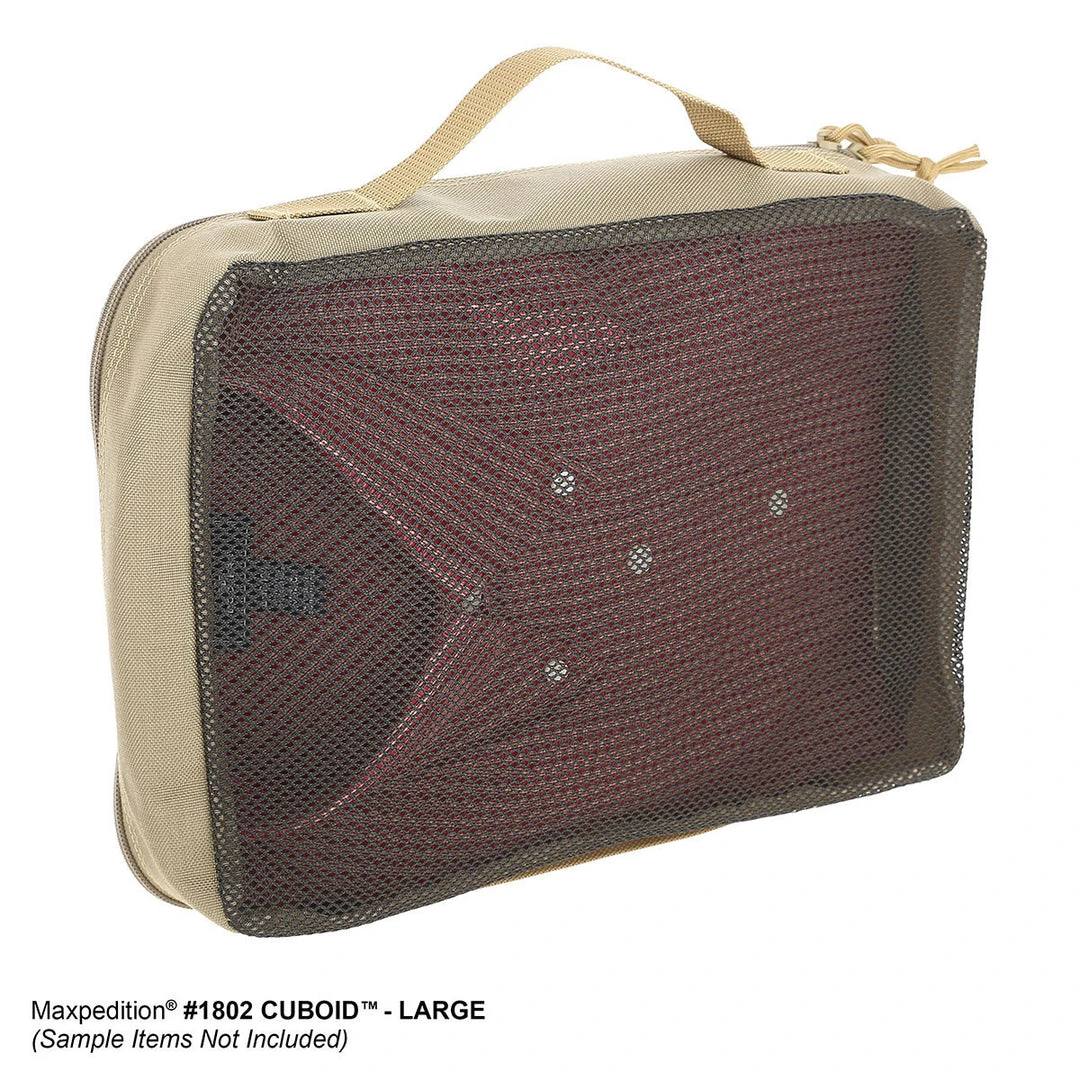 Cuboid organizers are soft containers excellent for travel and ideal for items that don’t wrinkle when folded or rolled. Their mesh areas allow viewing of contents.